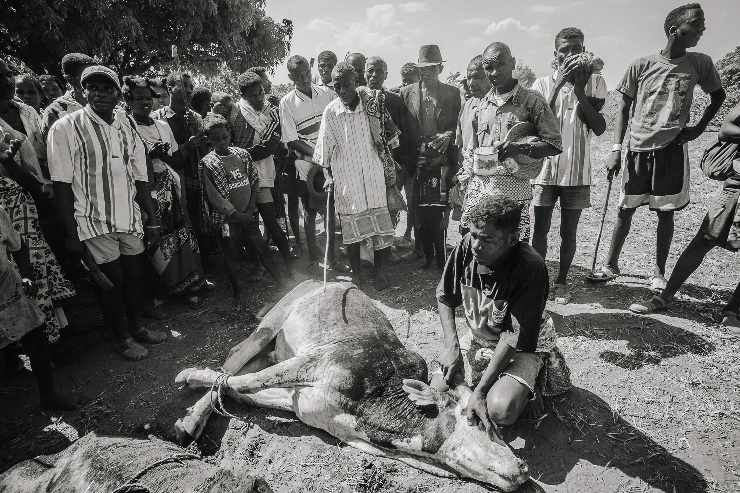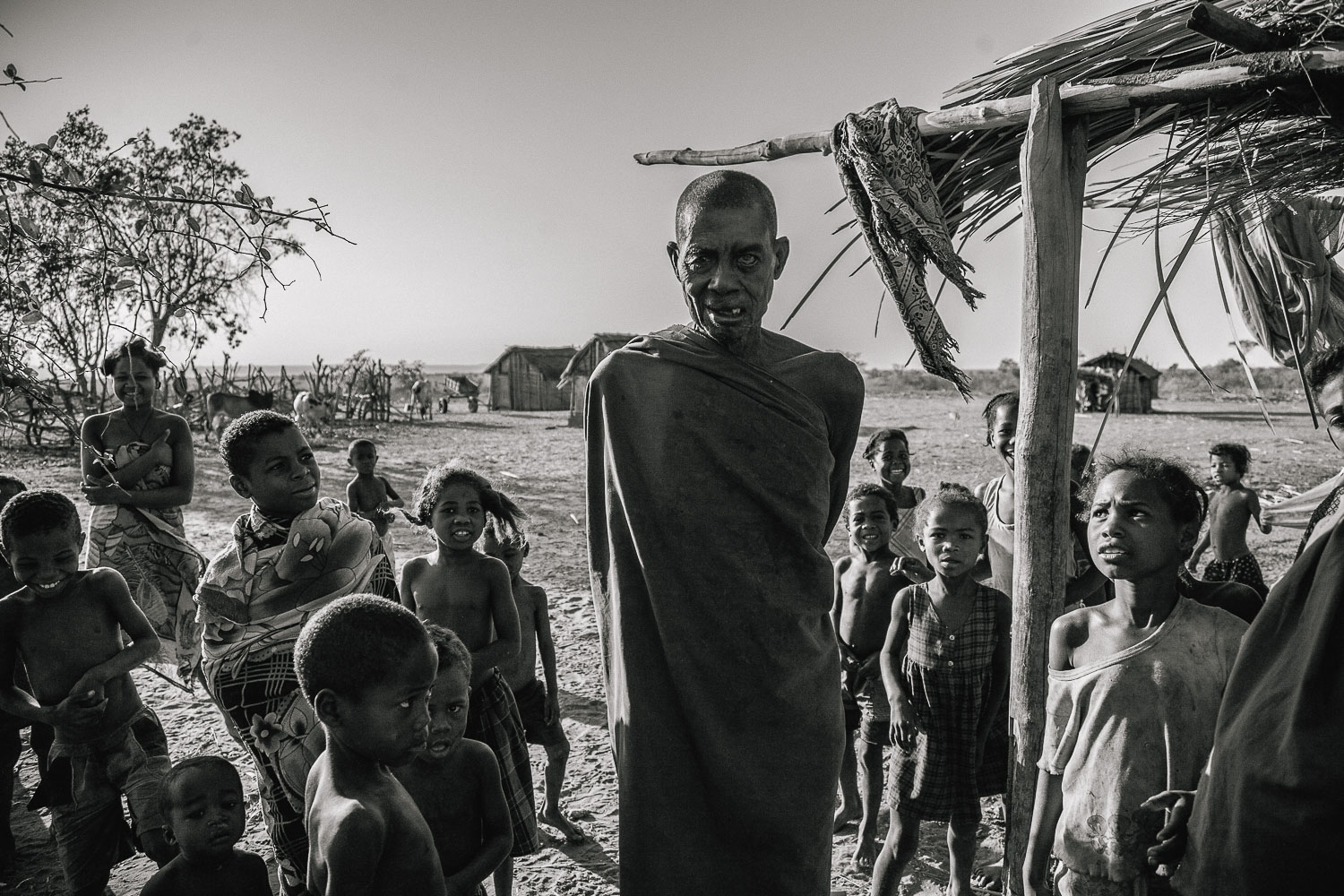 Son las 7 de la mañana, una luz anaranjada tiñe tierra, ganado, casas nubes y la mirada de niños que entre risas y sorpresa me azuzan para jugar. Al fondo un imponente baobab preside la reunión de los hombres de la aldea. Estamos en Antsiloakarivo, día para arreglar asuntos importantes, en una de las poblaciones dispersas por la región Masikoro. Nos dirigimos hacia el corazón de Alamikea o bosque Mikea, región seca y misteriosa, no sólo por albergar un bosque, cuyos recovecos cobijan fauna y flora única en el mundo, sino por ser desde tiempos oscuros territorio de los habitantes Mikea.